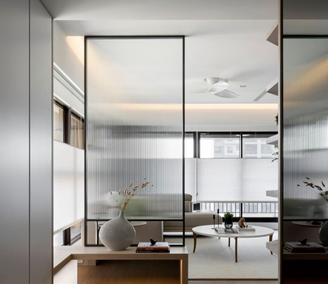 玻璃透光性好,用來做玄關(guān)隔斷不會(huì)影響室內(nèi)的采光。采用長虹玻璃或磨砂玻璃,既能保證居室的通透性,又起到了保護(hù)隱私的作用,給空間增添了別致的氛圍感,在輕奢、極簡風(fēng)格的家里比較常見。