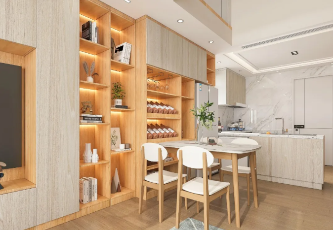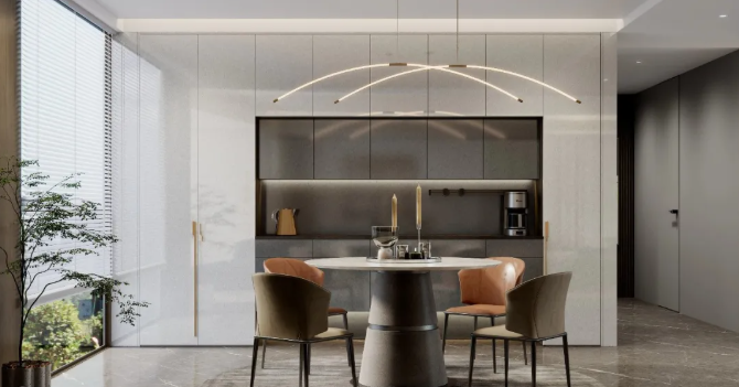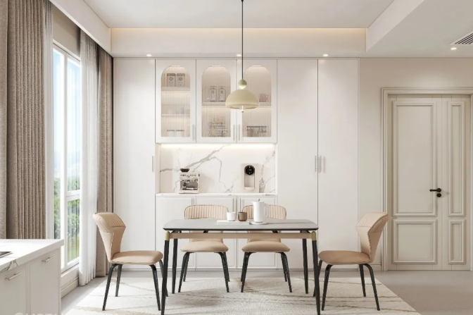 結合實用功能,搭配整屋風格設計餐邊柜,裝飾性強,不僅能營造舒適和諧的用餐環(huán)境,還能充分體現(xiàn)空間格調與屋主品味。