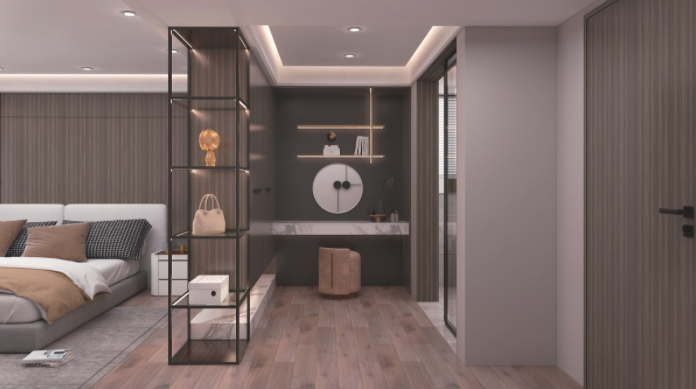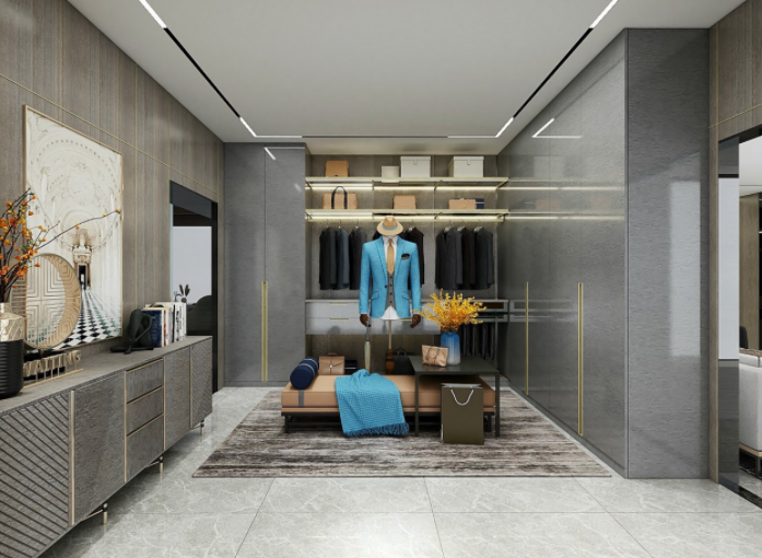 此外,衣帽間打造的核心意義就是收納衣物,因此,衣帽間首先要考慮是否擁有充足的收納空間。要明確的劃分換季區(qū)、掛衣區(qū)、鞋包區(qū)等不同區(qū)域,讓衣帽間繁而不亂,井井有條。