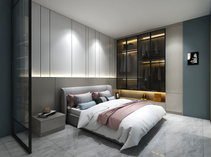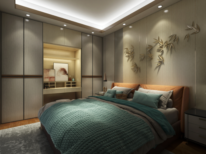 可利用臥室的多余空間做一個(gè)簡(jiǎn)單的小型衣帽間,設(shè)計(jì)巧妙的間融,能讓衣帽間與臥室內(nèi)外協(xié)調(diào),讓空間每個(gè)角落都得到充分利用。